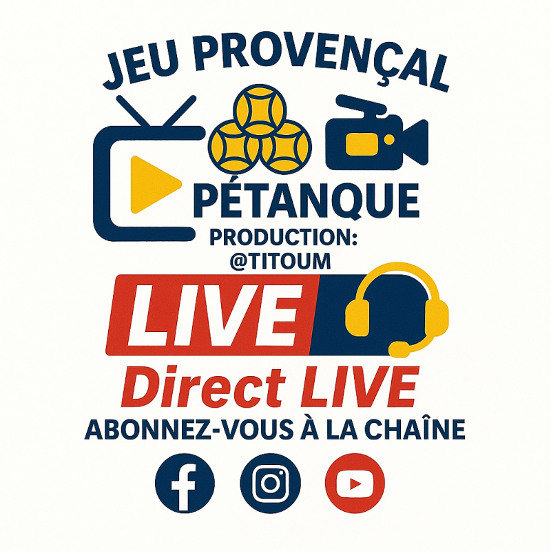 Suivez-nous sur Facebook, YouTube et Tiktok pour ne manquer aucun live streaming et rester au cœur de l'action des compétitions de Jeu Provençal et Pétanque.